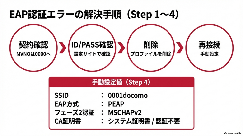 0001docomo EAP認証エラーの原因と解決手順
